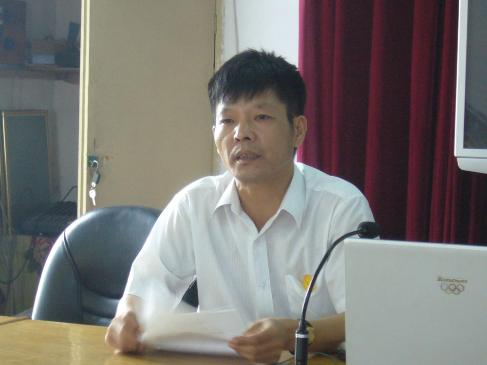 万里物业公司经理章广立在会上讲话