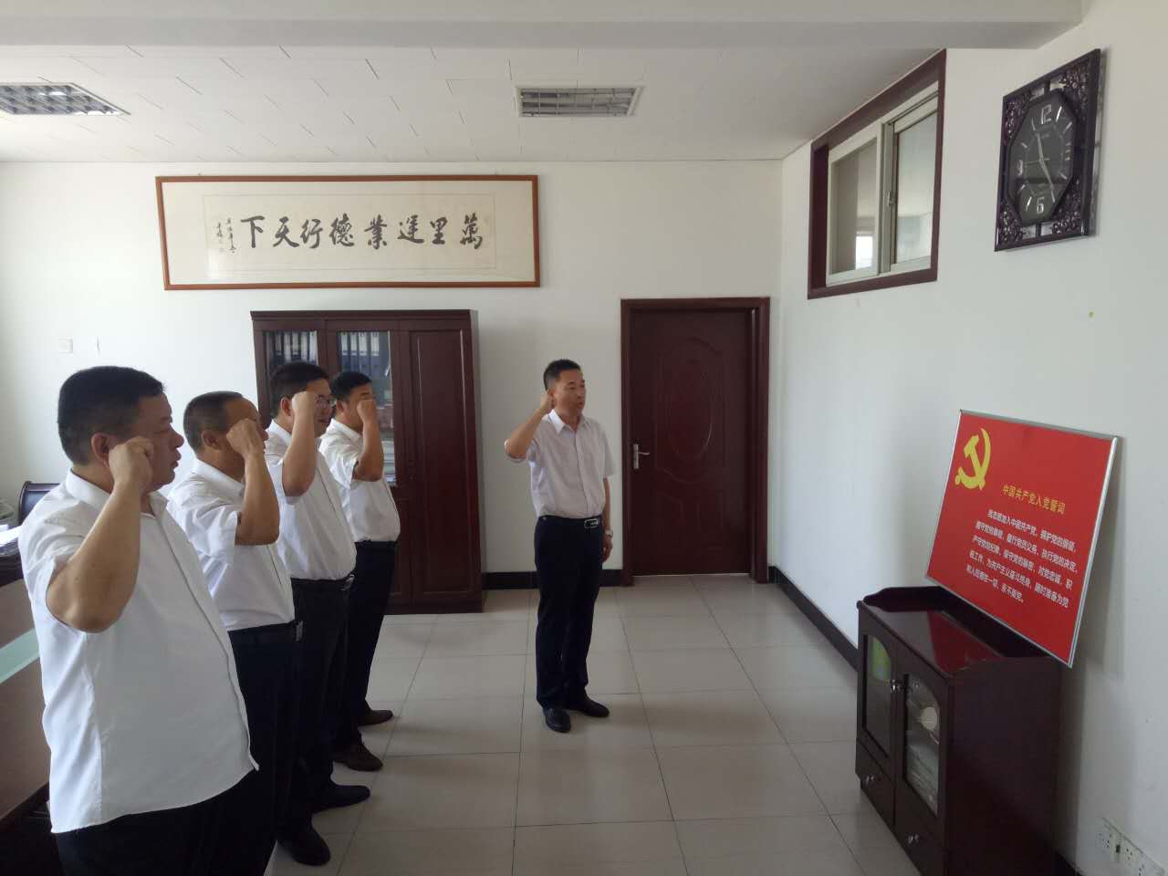 | 为庆祝中国共产党成立95周年,进一步增强广大党员干部的党性修养,6月29日上午,万里客运中心党支部组织全体共产党员举行了“重温入党誓辞”主题活动。面对鲜红的党旗,大家高举右手庄重宣誓,重温自己对党虔诚的誓言,表达了为党的事业奋斗毕生的决心。 宣誓结束后,万里客运中心党支部书记张建峰强调:当前全国上下正在开展“两学一做”活动,公司客运事业处于转型升级关键时期,万里客运全体党员干部、职 工,要以陈主席提出“十三个一体化”为工作纲领,时刻以共产党员的标准严格要求自己,处处做出榜样,时时起到模范,发扬艰苦奋斗、开拓创新、与时俱进的精 神,采取各种办法和措施,坚决要让“十三个一体化”落地生根,结出累累硕果,推动公司客运工作实现华丽转型,让公司客运事业重新换发出勃勃生机,再创客运 事业新辉煌。 活动结束后,全体党员纷纭表示要把“两学一做”精神落实到工作中,不断增强党的观念和党员意识,在本职工作中发挥先锋模范作用,进一步弘扬奉献精神,努力做好“十三个一体化”各项工作,为万里航母增加新的强大动力。 |