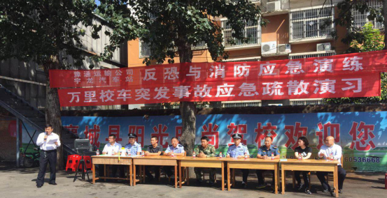 9月21日上午,许昌万里校车服务有限责任公司襄城分公司(以下简称万里校车襄城分公司)在襄城县长途汽车站开展了校车消防应急疏散演练活动。襄城县教体局、交警大队、公安治安防恐大队、公安消防、运管所及新闻媒体等共同参与万里校车和豫通运输公司及宇龙汽车站的联合消防应急逃生和汽车站防恐演练活动。