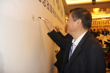 会议结束,陈立干副会长在会议背景板上签名,留下纪念改革开放40年的闪亮笔迹。 此次座谈会,出席代表有道路运输行业的领导者、建设者和帮助道路运输行业不断进步的朋友们。部党组成员、副部长刘小明,部原副部长、中国道路运输协会创始会长王展意,部总工程师、政研室主任周伟,运输服务司司长徐亚华和交通运输部机关有关司局的领导,交通运输部在京单位有关领导,道路运输行业老领导和老同志,中华全国总工会海员建设工会、中国消费者协会、能源基金会(中国)等相关单位和国际机构、地方交通主管部门、运管机构,行业骨干企业代表等160余人参会。