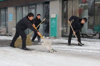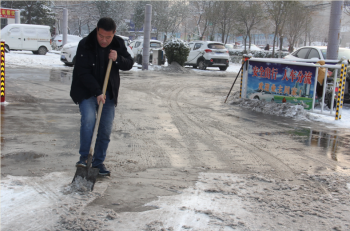 1月9日,莲城许昌,新年后的首次降雪过程告一段落,迎来晴好天气。雪后初霁,天蓝地白,一切皆美。但道路结冰和积雪严重影响人们安全出行。 当天上午8时,许昌万里运输集团机关与许昌万里物业联合清扫万里大厦院内的积雪,或铲或扫,利己利他。你铲雪来我扫除,众人忙且不亦乐乎,不经意间展现出一幅生动的人文美景,一动一笑细数着万里人的温暖情愫。在大家共同努力下,道路慢慢现出原形,进入大厦的人们可以放心大胆地在往来行走。 清扫积雪结束,大家在雪地上写下:小寒,2019,第一场雪!以此祝福新年。