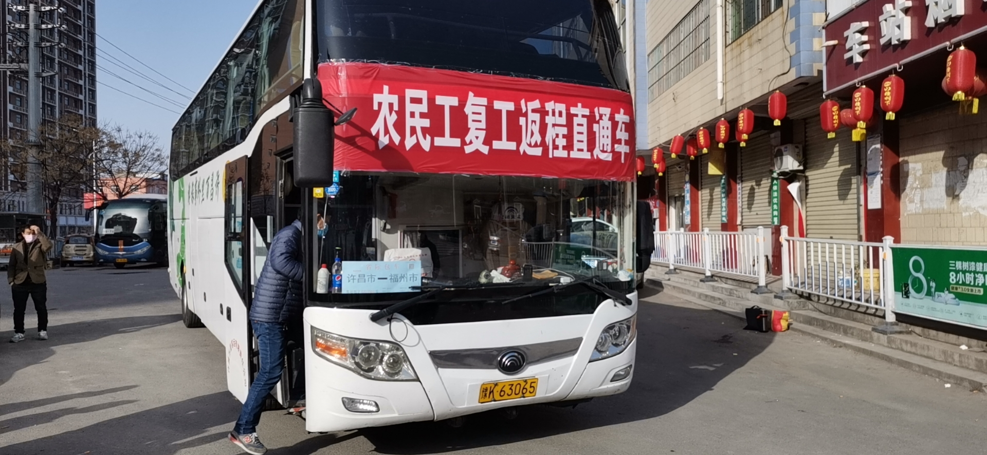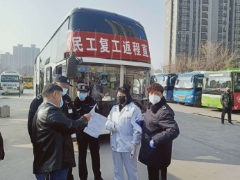 鄢陵分公司发出首趟农民工复工复产直通车 2月22日上午9点40分,许昌万里客运有限责任公司鄢陵分公司首趟农民工复工复产直通车在鄢陵客运西站发车。16名来自鄢陵县马栏镇的农民工集体乘车,前往福州市长乐区复产复工。 许昌万里客运有限责任公司对此高度重视,立即调度旅游分公司全力配合此次运输任务。鄢陵县交通运输局局长刘晓杰、副局长王田宜,县运输管理局局长刘红心、股长曹峰亲临鄢陵长途客运站指导有关事宜。旅游分公司根据复工人数调派车辆(车号豫K63065、核载55座),办理车辆外出的相关手续,安排优秀驾驶员承担任务。旅游分公司驾驶员对车辆进行车内、外消毒工作,在车内设置“留观隔离区”。 鄢陵长途客运站工作人员为复工农民工消毒及测量体温,车辆发车前再次确认乘车人员是否佩戴口罩,并严格控制50%的客座率,让乘客分散就座,确保此次农民工安全、顺利返岗复工。(万里客运 赵杰)