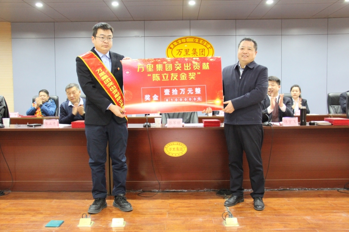 集团党委委员、董事董红伟宣读《关于表彰2025年度万里集团先进单位、优秀职业经理人和优秀员工的决定》。 参会领导向获奖单位和先进个人颁发奖励和证书。 集团优秀员工代表、先进单位代表、优秀职业经理人代表、先进党支部代表、突出贡献奖获得者作交流发言。