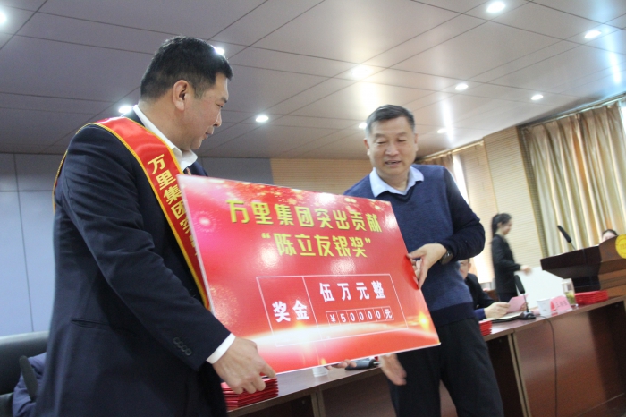 集团党委委员、副董事长王柏强宣读《关于表彰2025年度万里集团突出贡献“陈立友金奖”获得者的决定》。